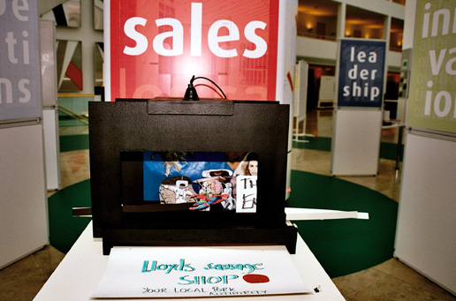 Workshop sessions involve all aspects of making a theatrical production from storyboard, design, making soundtracks, music and dialogue to lighting and movement, culminating in rehearsal and performance. There is no age barrier to taking part in New Model Theatre workshops - primary, secondary or higher education students plus working adults and senior citizens, and special needs students and people with mental health problems, all have benefited from creating dramas on a small scale. Pictures here are business executives of the German company, Haniel involved in workshop sessions at the Lehmbruck Museum in Duisberg.